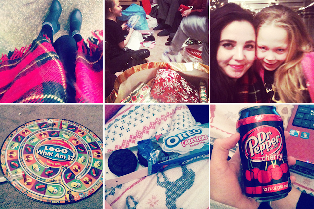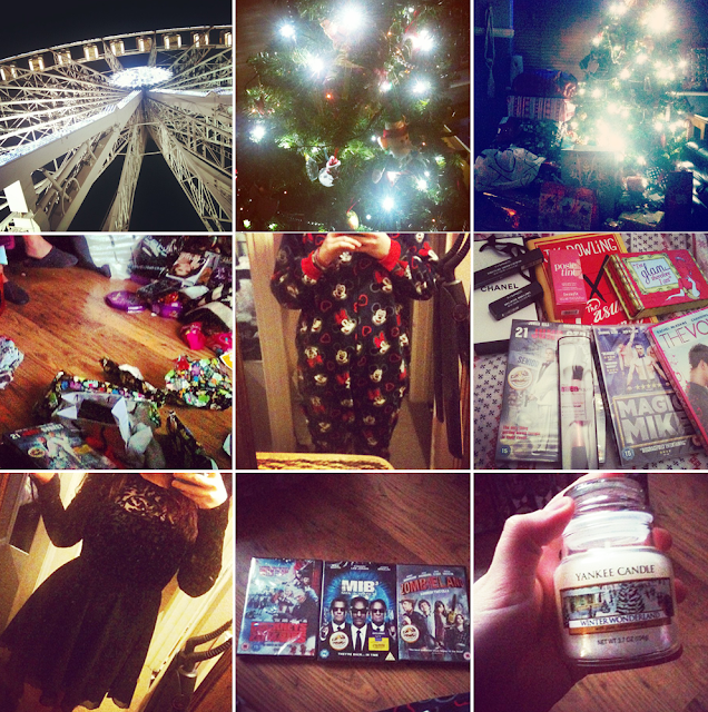 LEFT TO RIGHT: Winter Wonderland (blog post) · Christmas Tree · Sky high presents · Christmas morning excitement · New Minnie Mouse onesie!· Gifts · Christmas Day outfit (dress is from Motel Rocks) · More gifts · My first Yankee Candle! · Nan's Christmas dinner · YAYYYY, finally! · Andrew's home made hot chocolate · All my treats from Andrew ♥ · Stocking up on my favourite perfume ♥ · Best breakfast · Curled my Mum's hair ♥ · Lush's Santa bath bomb (turned water from red to green, then exploded with red glitter!) · Glittery nails · Last family get-together outfit · More present exchanging · Me and my little Cousin · Family games (I won this and Family Fortunes *inserts invisible wink face here*) · Oreo cakes · Yummyyyy! ♥