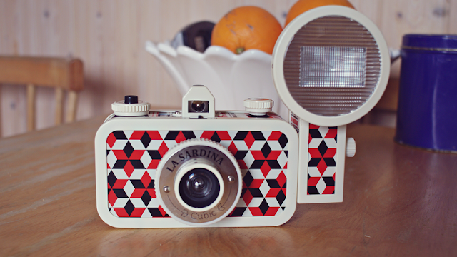 I was sent the La Sardina Cubic camera & flash (first image) for my own personal use which I have already put a roll of film into (think I am on frame 5 currently!), so I'll no doubt scan in the negatives and blog about them soon.