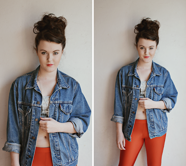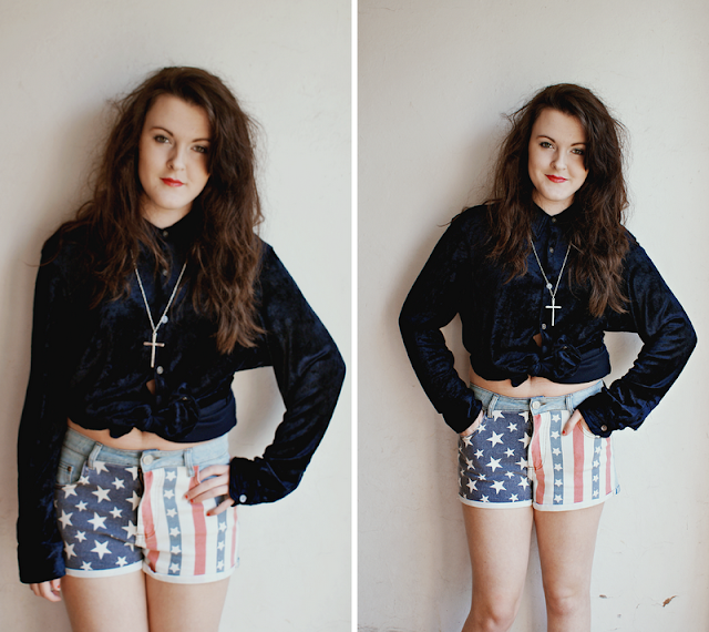 As part as one of my end of year units, I had to do a made up commissioned shoot. My task was called "we love denim" and I had to shoot four photos. My lovely Sister modelled for me and I basically styled her and dressed her up to look like me haha. The usa print shorts* are c/o Glamorous, and so are the light wash jeans. The jean jacket is vintage Levi and the bottom shorts are an old Topshop purchase.