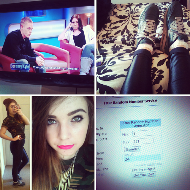 Morning crumpets · Sunday morning walk to work · Ombré growing out! · Made coco pops cakes with my Sister · Waiting for my driving instructor to turn up · Dressing like a boi · HP enthusiast · Deathly Hallows (P1) · Weird Jezza Kyle · Air max 90s ·Wednesday's outfit! (outfit post here) · Giveaway winner! · Visited my grandparents · Nan made me lunch :) ·Thursday's outfit! · Saw 'Dark Shadows' :) · Saturday's face · Bought h&m riding pants (finally!) · h&m playsuit · Keep or return this crop top? (from Topperz!) · Saturday's purchases · Dyed my hair red!