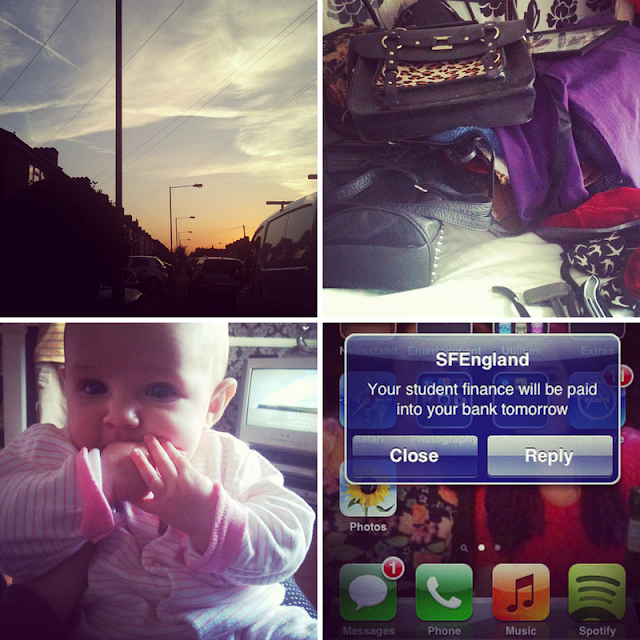 Monday's outfit post (blogged about it here) · Walking home from Uni Tuesday · Liz Earle goodies (: · Blog's "to-do list" · Thursday night's outfit · Hangover cure (i love this film) · Too hungover to answer the door to parcels · Off to work! · Beautiful walk home from work Saturday · Sorting out stuff I no longer wear! · My beautiful niece · The best text I've ever received.
