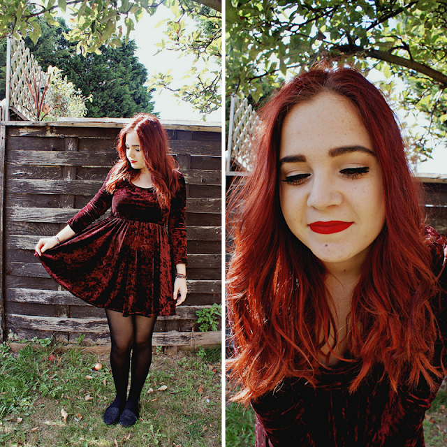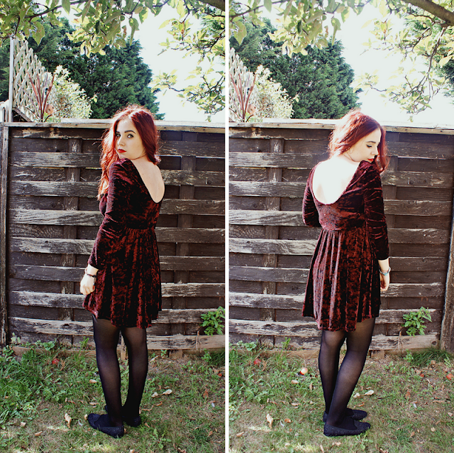 Today I had Uni and finish every Wednesday at 12:30 (not bad ay?!) - so this morning I just picked the first thing that appealed to me. I bought this dress years ago and I'm so glad I did as velvet never seems to go off trend! It's a beautiful deep wine colour, (which happens to be my favourite colour) and is the perfect length for my not-so-long legs. However, it does have the tendency to slip off my shoulders so I should have probably downsized, however I paired it with my leather jacket (not photographed) as it was a little chilly today, and I was good to go!