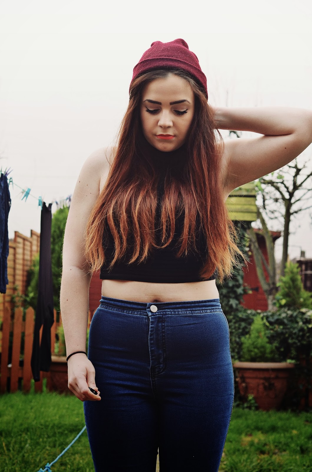 eBay Beanie | ASOS top | ASOS High Waisted Jeans | Vans