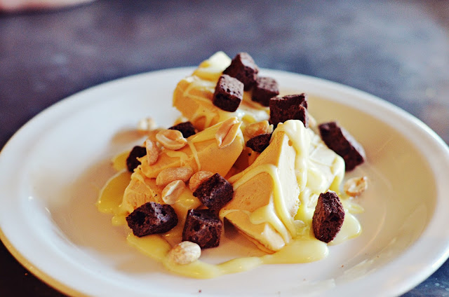 Dessert (to share): Peanut butter parfait - something inbetween a cake and ice-cream, with melted white chocolate and brownie pieces