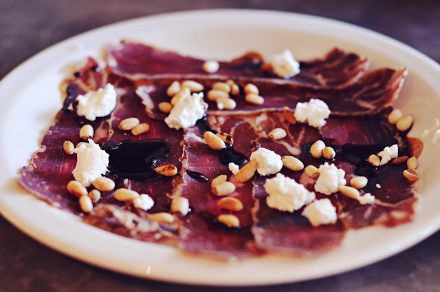 We went for the lamb speck with feta cheese and pine nuts; drizzled in balsamic vinegar. We didn't have a clue what 'speck' meant but just went for it anyway. It looked delicious but I'm not sure if I liked it.. but I am funny when it comes to meat! The only way I can describe it was a lamb's version of bacon. With cheese. Weird.