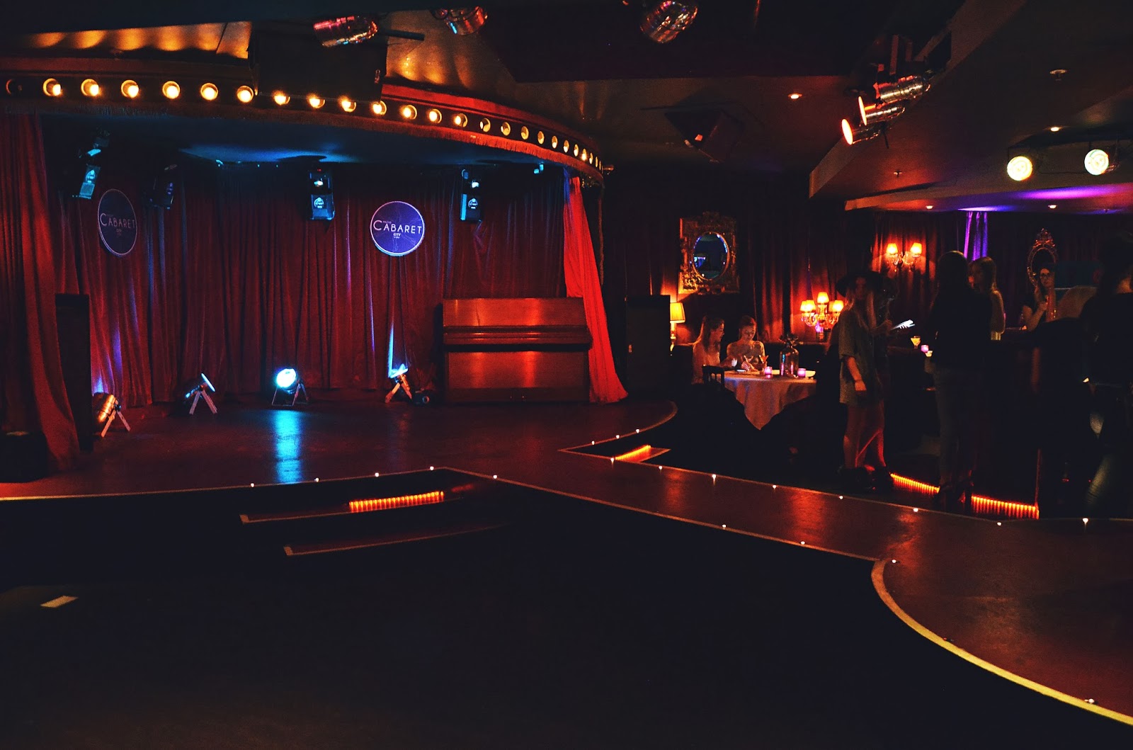 I finally met the babes Islay and Sam at Tower Hill Station and then we walked to the venue which was Proud Cabaret; luckily only a five minute walk. We bumped into Lauren and had a little catch up whilst meeting Rhea and finally after years of reading her blog; Kayla! Upon entering the venue we was told to take the staircase going down until we reached the seductive, smokey and dark room where it all went on. The first thing we all saw was little waitresses walking around in french knickers and stockings. Quite the shocker! As soon as we all entered we was given a cocktail which was lovely and fruity! And then me Lauren & Islay got our photo taken :)