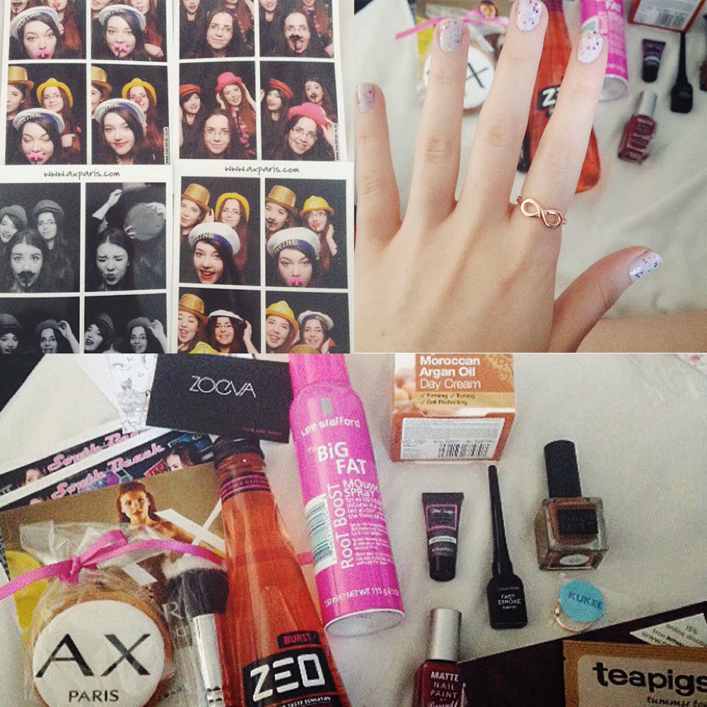 We OBVIOUSLY took full advantage of the photobooth as did everyone. So funny! There was a pic and mix station aswell which offered milk bottles and chocolate mice - my absolute favourites! As the event whirled to an end, we all received a goodie bag full of treats from the likes of: Dr Organic, Barry M, Collection and Dr Lipp.