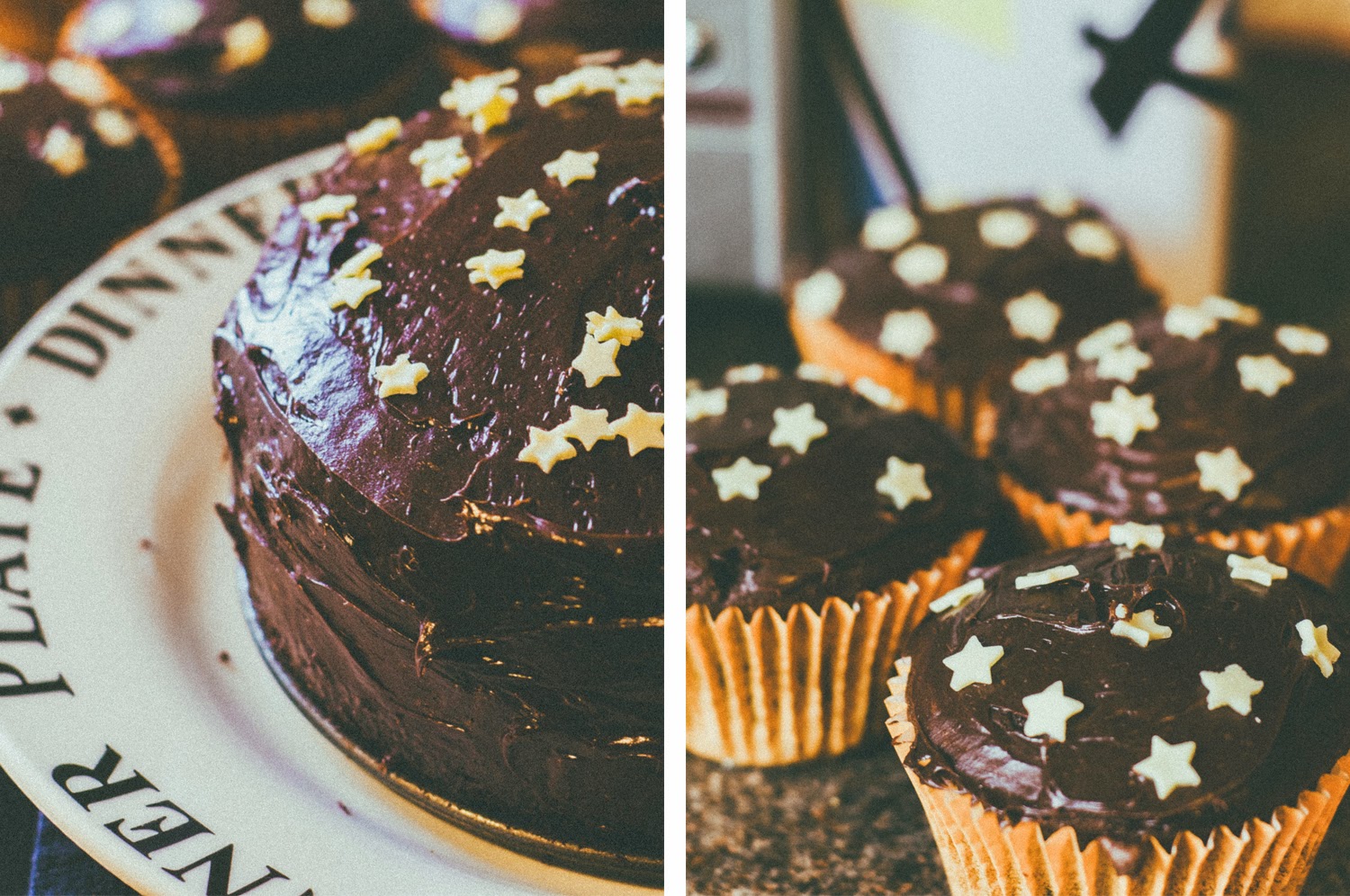 Taaaa-daaaa! One chocolate covered cake with white chocolate stars. It was as yummy as it looks! Betty Crocker box kits make it incredibly easy to bake yummy treats without the need to buy a ton of ingredients. Definitely recommend them!