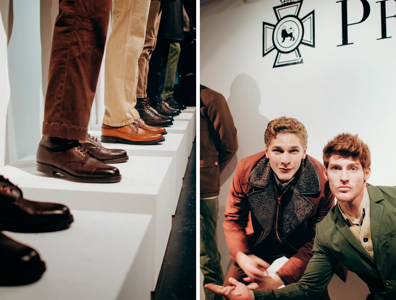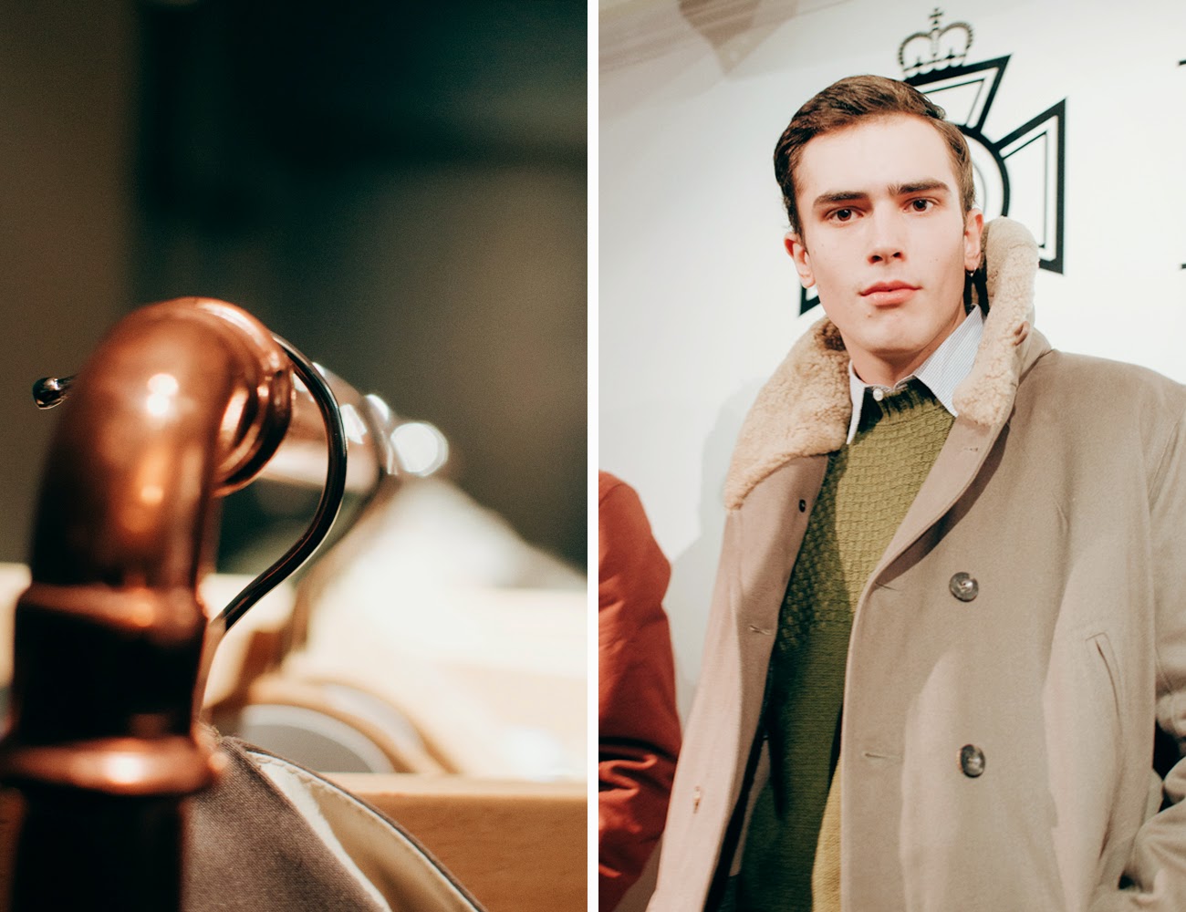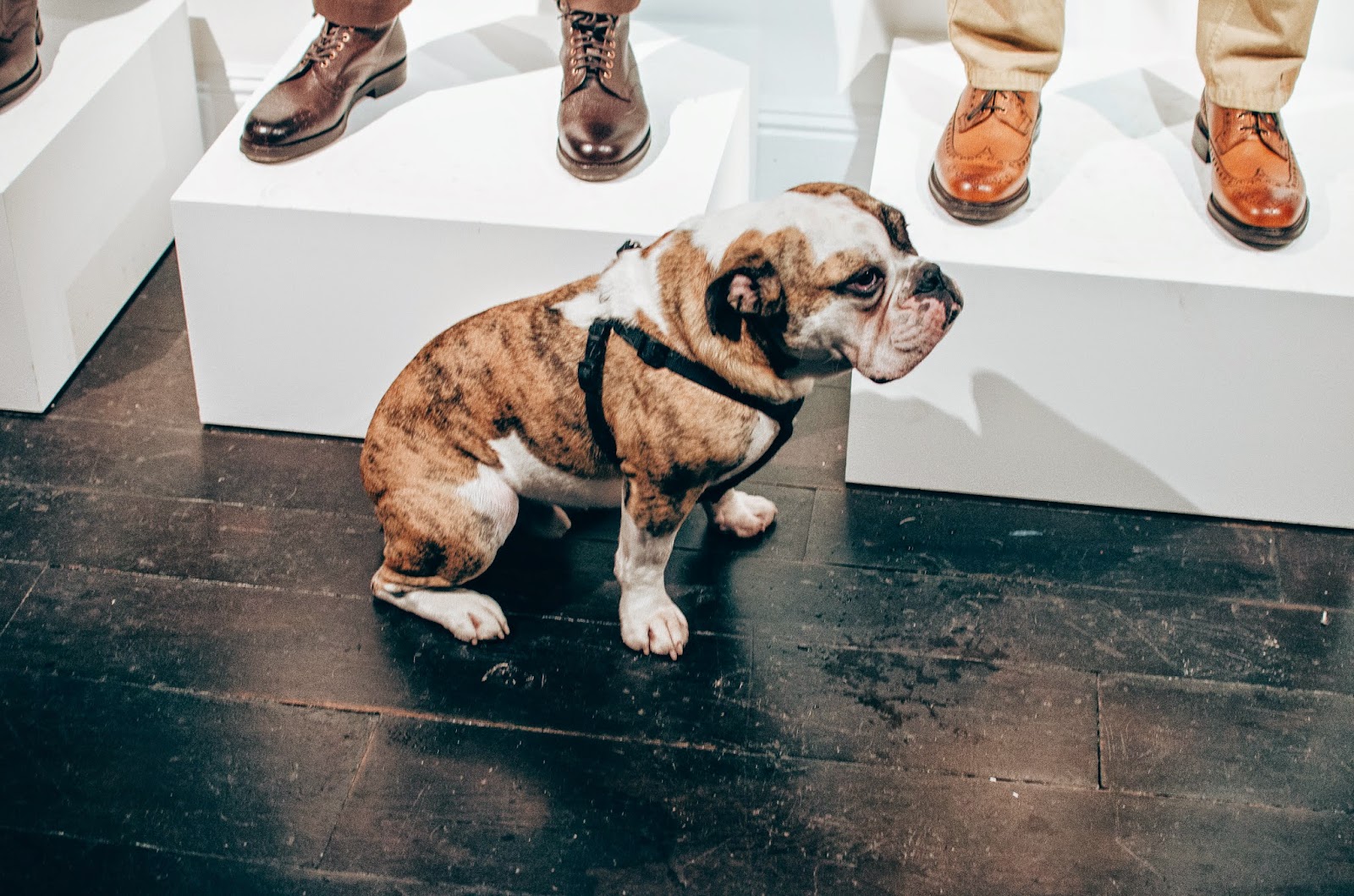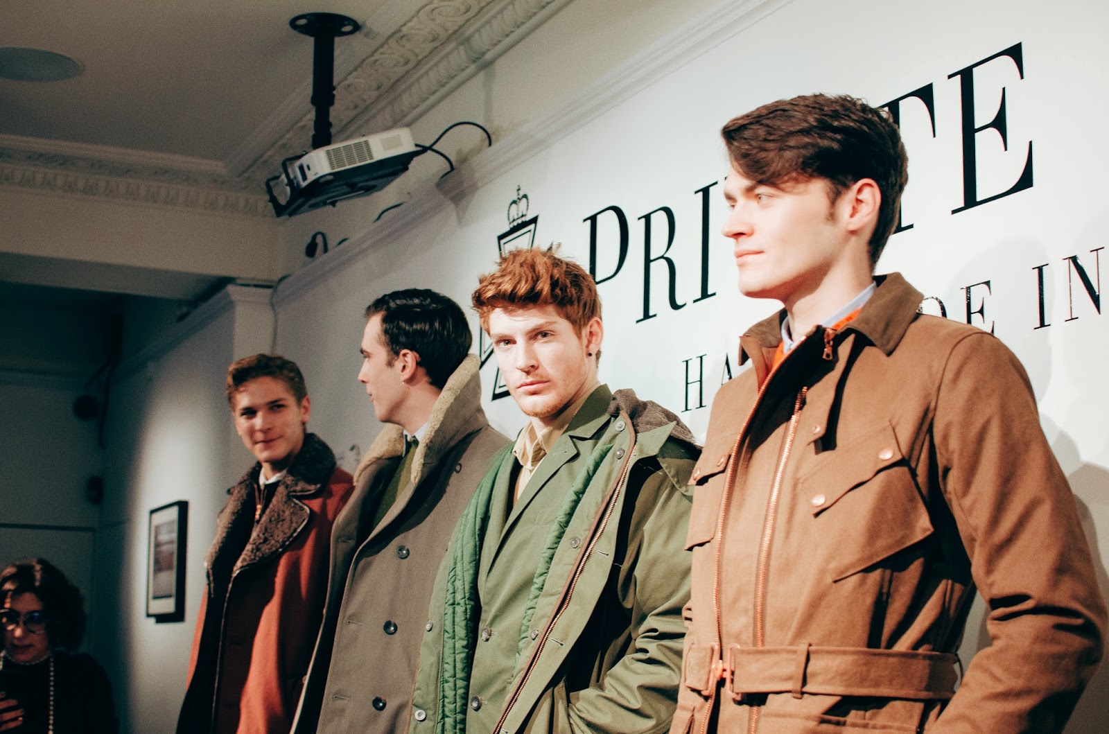 The first presentation show I covered was Private White VC; a British menswear brand. Upon arrival, the owner had a Bulldog called Brutus that was walking around and he was the cutest thing ever and extremely distracting for a dog lover like me. Then the models standing on plinths were drop dead gorgeous and again that was extremely distracting. Oh life as a menswear photographer!