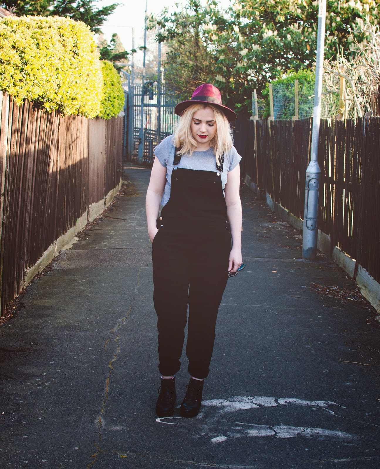 Top: Primark | Dungarees: ASOS (here) Boots: ASOS | Hat: Depop | Sunglasses: Chicnova*