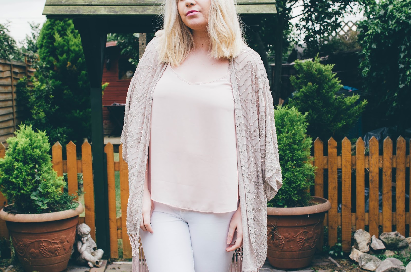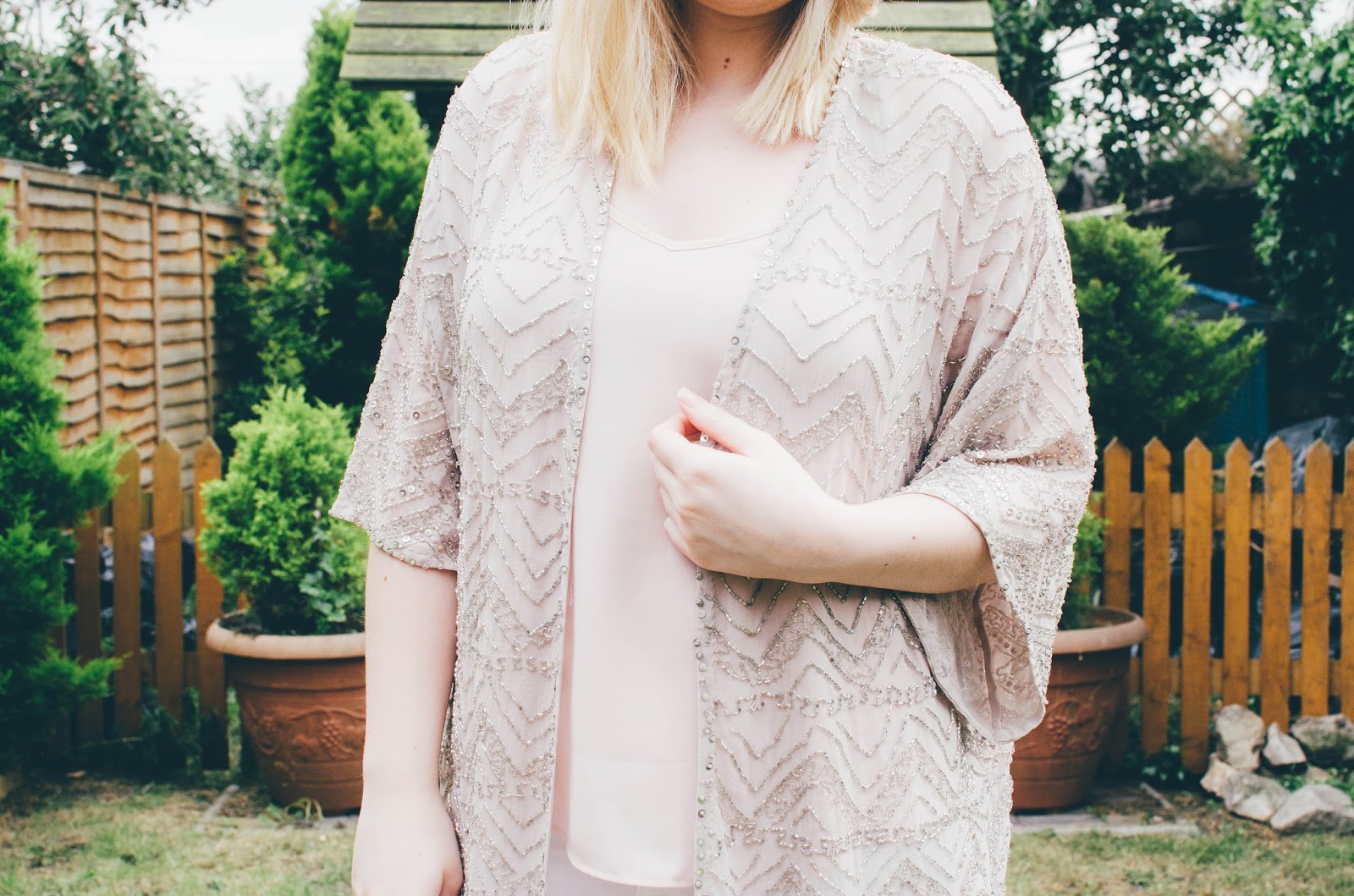 As soon as I saw this dusty pink kimono*, I knew I HAD to have it. Just look at the beautiful embellishments on it! Layers upon layers of beads and sequins, it definitely does the talking for any outfit and is most definitely a head turner.