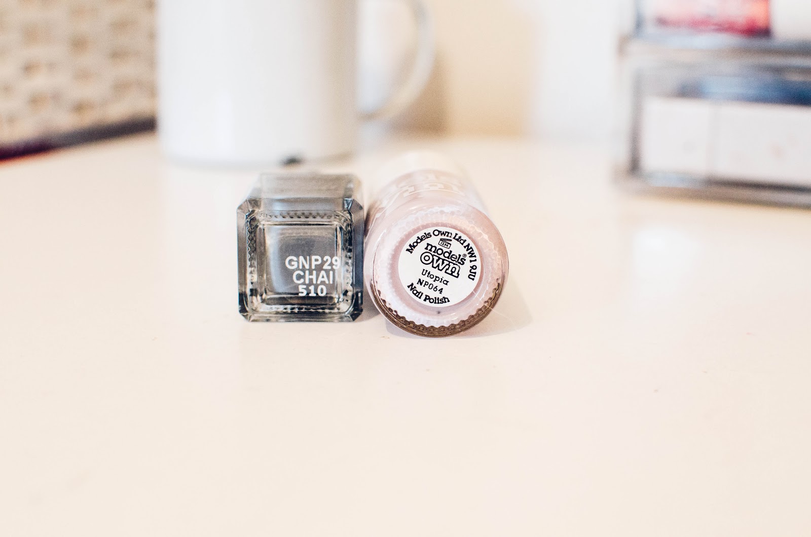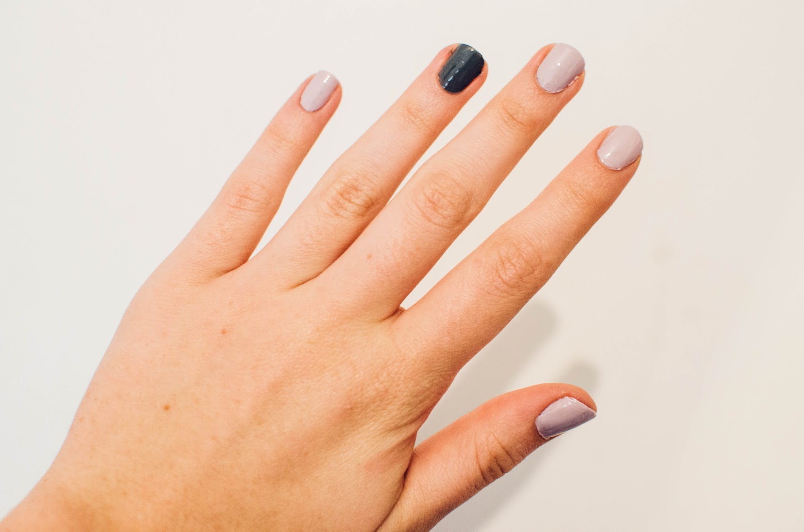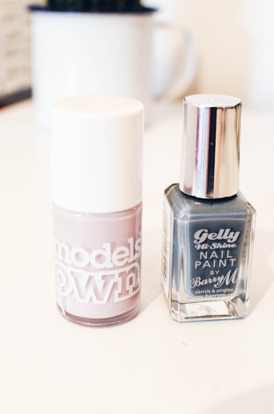 I decided to create something grown up whilst being fun at the same time! I used 'Utopia' by Models Own and then Barry M in Chai* which is a dark grey as the accent nail colour.