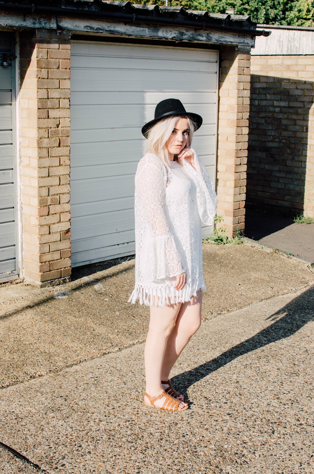 Sadly, this little white crochet number is no longer available from Boohoo, but I still wanted to prance around the streets and snap it up for my blog.