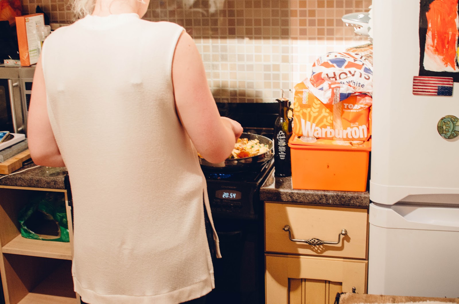 Firstly, it's time to prepare the stock. I went for chicken flavour and have never dealt with stock cubes before so I was a little confused at first. However, I worked out that 600g would be around 2 cubes. I let the 2 cubes melt into a jug of boiling water and simmer whilst I started on the chicken...