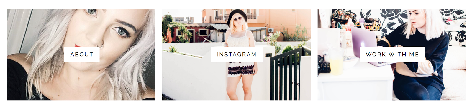 Once you scroll down, you will be welcomed with three feature boxes that link to my about me page, my instagram and my work with me page. I guess these are the three areas that I really want to push. However, if I do get back into shooting fashion photography, then this will be a superb place for me to link to my photography website.
