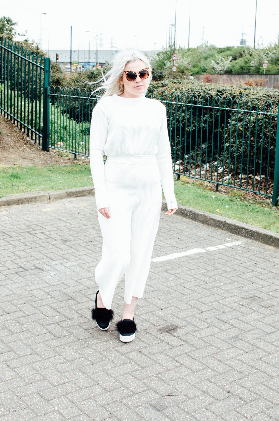 The jumpsuit itself is so comfortable and cosy and perfect for the weather in the UK at the moment - absolutely freezing and so very grey! If you know me, you'll know I love anything with a culoutte or wide leg fit which is what drew me to this white number! I decided to upsize due to the ribbed material and I'm glad I did. The material on the arms is quite tight but not uncomfortable. I decided to pair it with my favourite funky shoes at the moment; my Kurt Geiger LULU flatforms* which are statement in their own right!