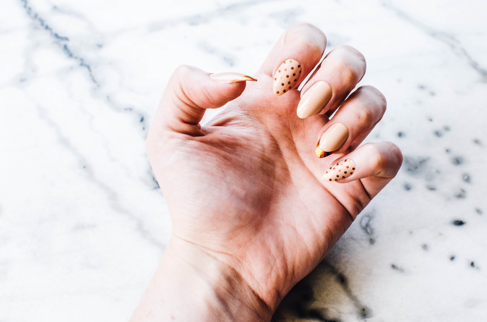 There's a wide range of different designs on the nails including gold tips and polka dots; aswell as plain nude nails too.
