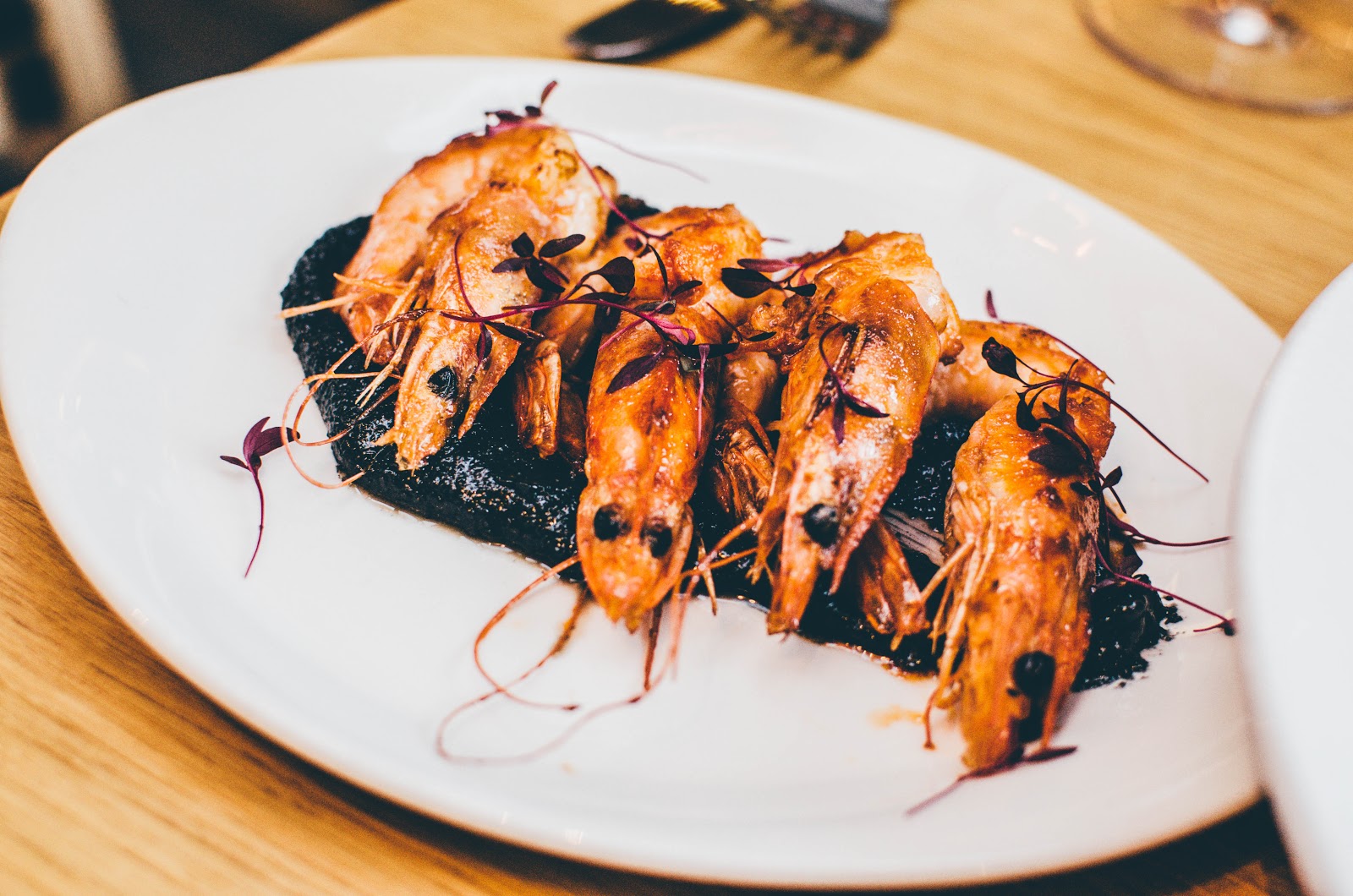 The first two dishes arrived! Grilled prawns with squid ink polenta (£12.00) were placed infront of us and I actually couldn't wait to try them as I realised in Lanzarote that I actually love prawns! The squid ink is something I was very hesitant to try but it was actually okay and a nice accompaniment for the prawns.