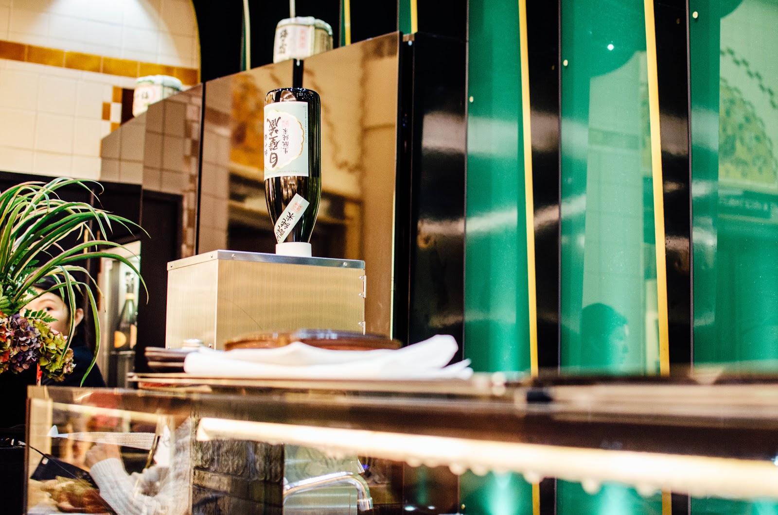 We were seated to the left side of the bench and had chopsticks and a small jug of soya sauce each for our dishes; with a dish to pour the soya into. Straight away, we was offered drinks and so got a glass of wine and some bottled still water whilst we caught up about how our week was going with work and general life.
