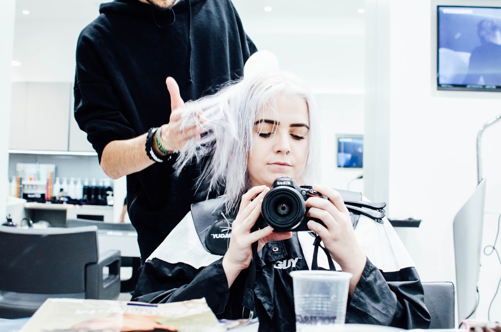 Once my colour was complete, it was time for my cut and blow dry. My stylist was called Stefano and he was the loveliest person. He really listened to what I required and didn't go scissor happy, like what most hair stylists do. We had a little chat about my hair and agreed a fringe wouldn't be a good idea on white hair, as straightening it everyday would cause breakage. Instead, we agreed on a side fringe/bangs. I didn't want much cut off the length, as I am trying to grow my hair long. Again, he listened to what I wanted and actually gave my hair a trim and not a chop!