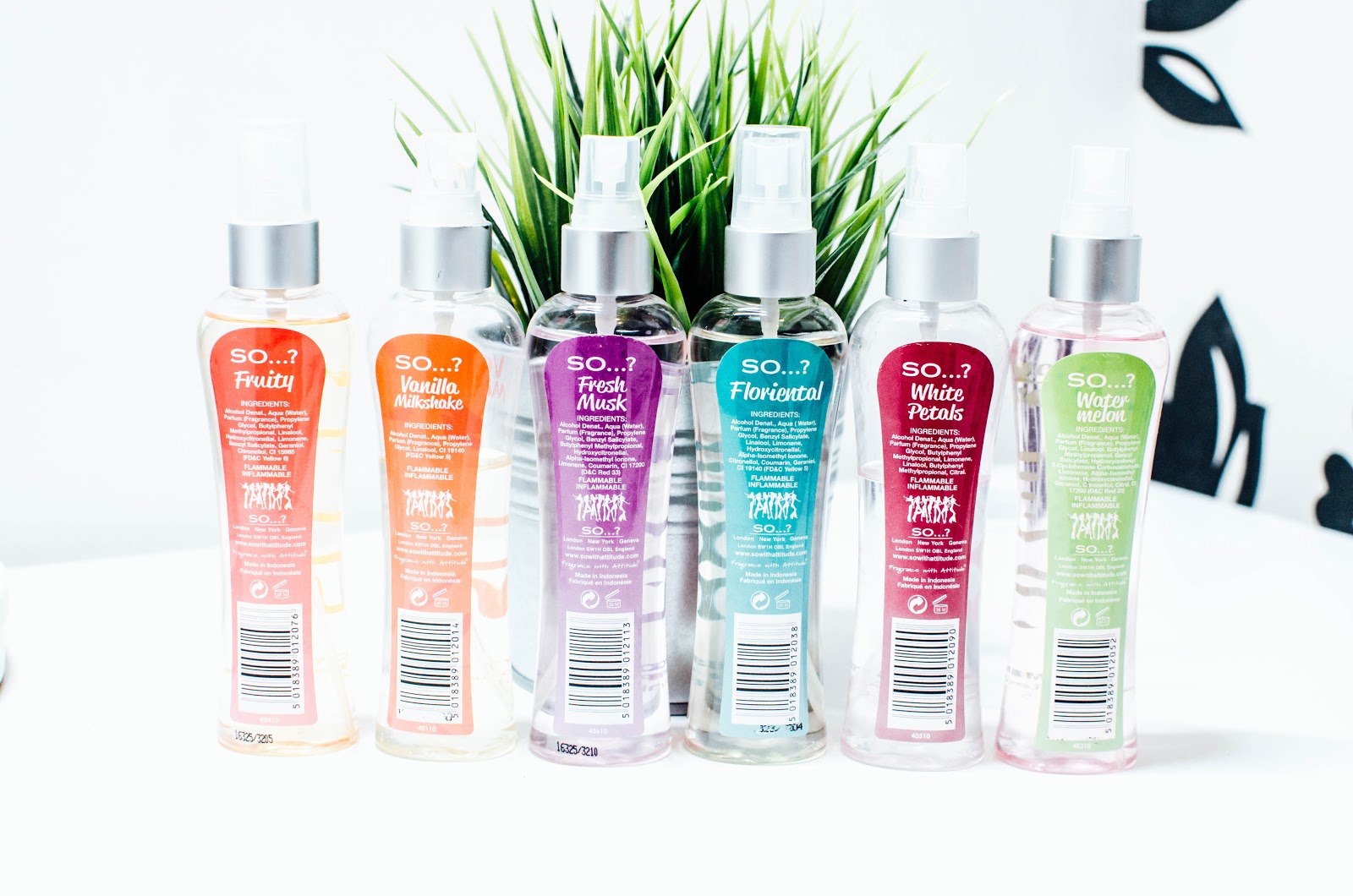 From left to right we have: Fruity, Vanilla Milkshake, Fresh Musk, Floriental, White Petals and Watermelon.