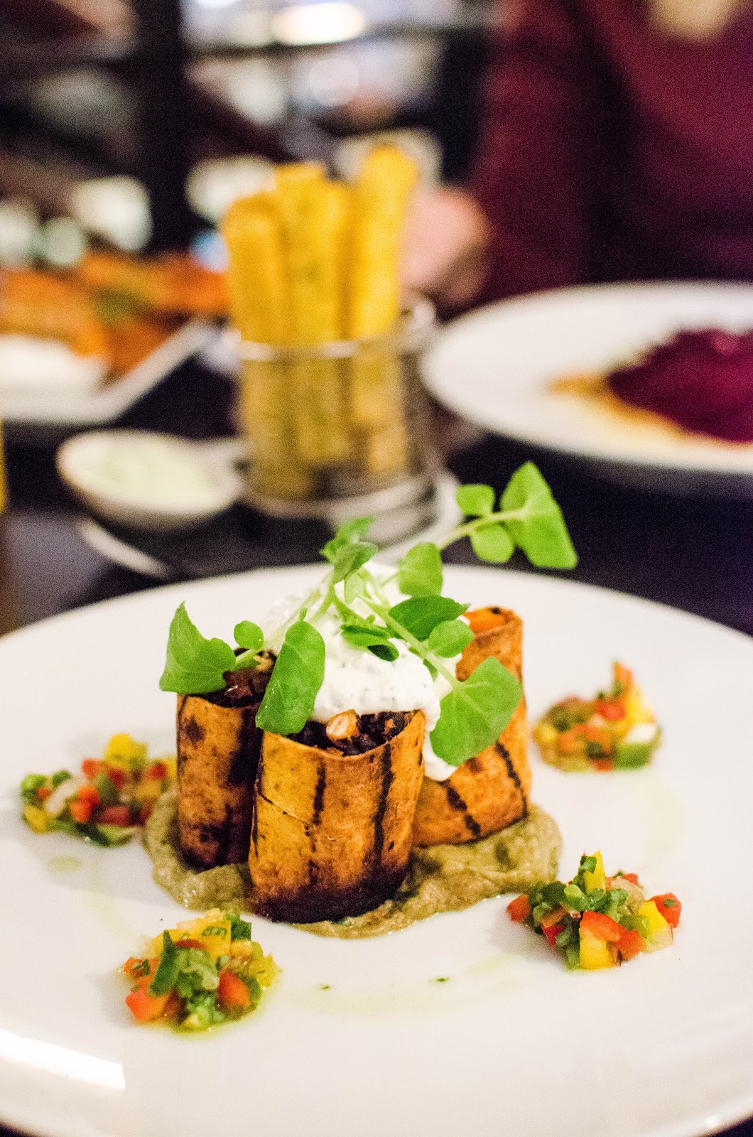 I loved the presentation of this and felt it was a great dish to have on the menu for people who love Mexican food, but maybe want to avoid meat or try a different alternative to meat. I added some non-vegan sour cream to mine and loved them! The tortillas were slightly crispy and warm which is exactly what I like. I definitely recommend this dish if you love a good tortilla!