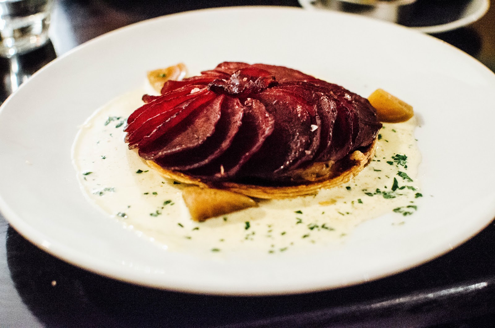 For mains, my guest chose the beetroot tart (£13); a flaky puff pastry tart, topped with creamed caramelised onions. Sitting on top of a cheese and herb sauce, wilted spinach was carefully placed underneath the onions. A nice dish if you're an onion and beetroot fan!
