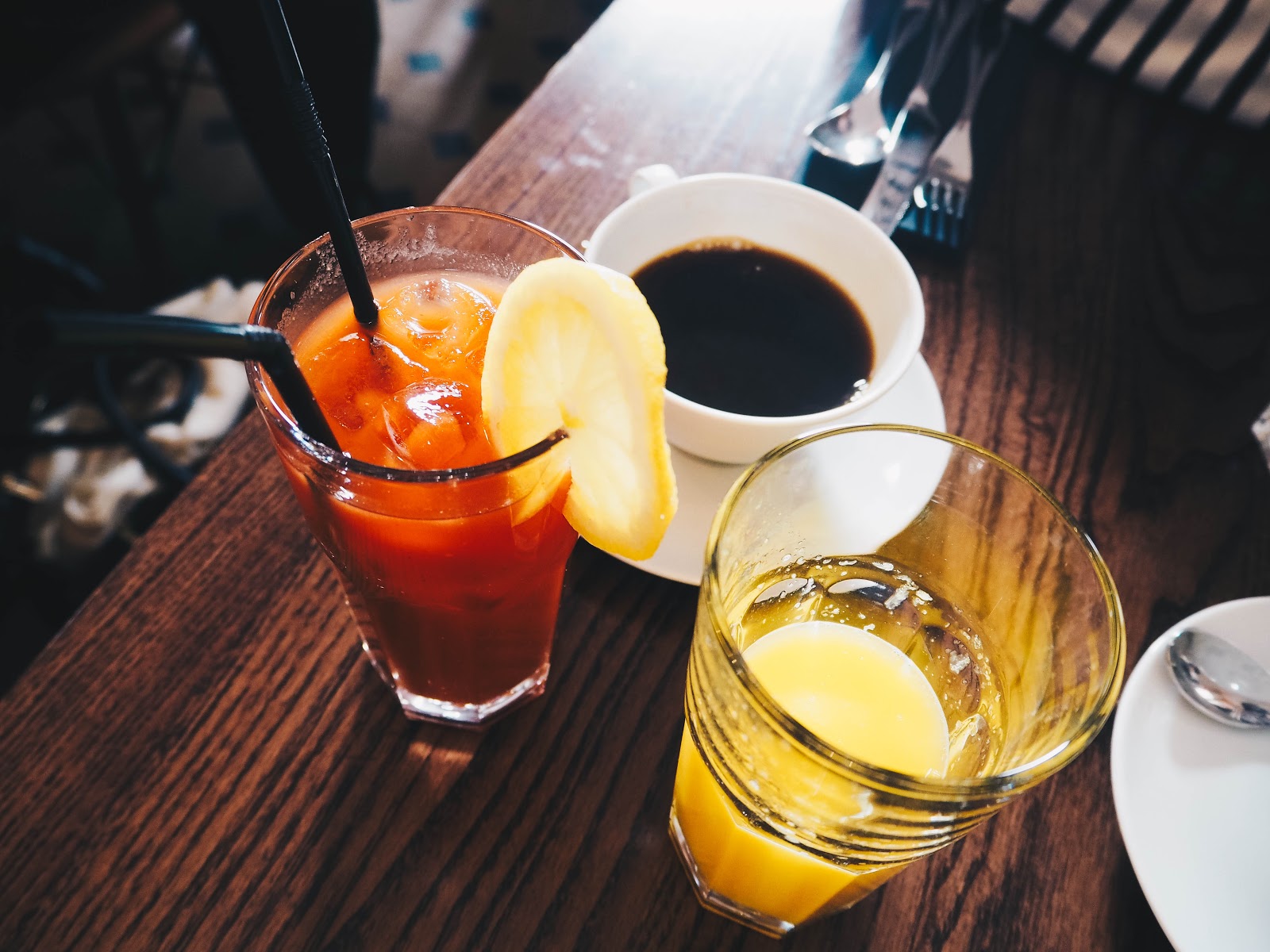 Andrew ordered a Bloody Mary cocktail and a coffee, and I went for a fresh orange juice. This was also the first time and the last time that I'll ever try a tomato based cocktail. Totally not for me!