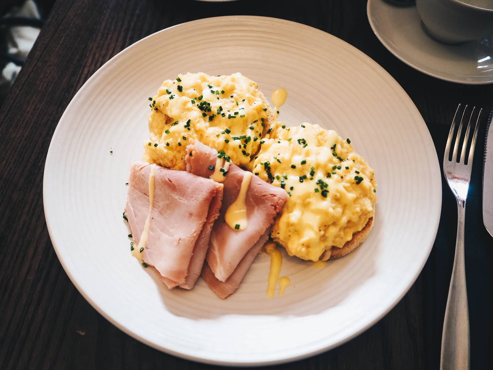 The brunch menu is short and sweet; with majority of the dishes involving eggs. Personally, I don't tend to ever order eggs and would always usually opt for something like bacon and avocado. However, I decided to order scrambled eggs on breakfast muffins, with hollandaise sauce and smoked ham.