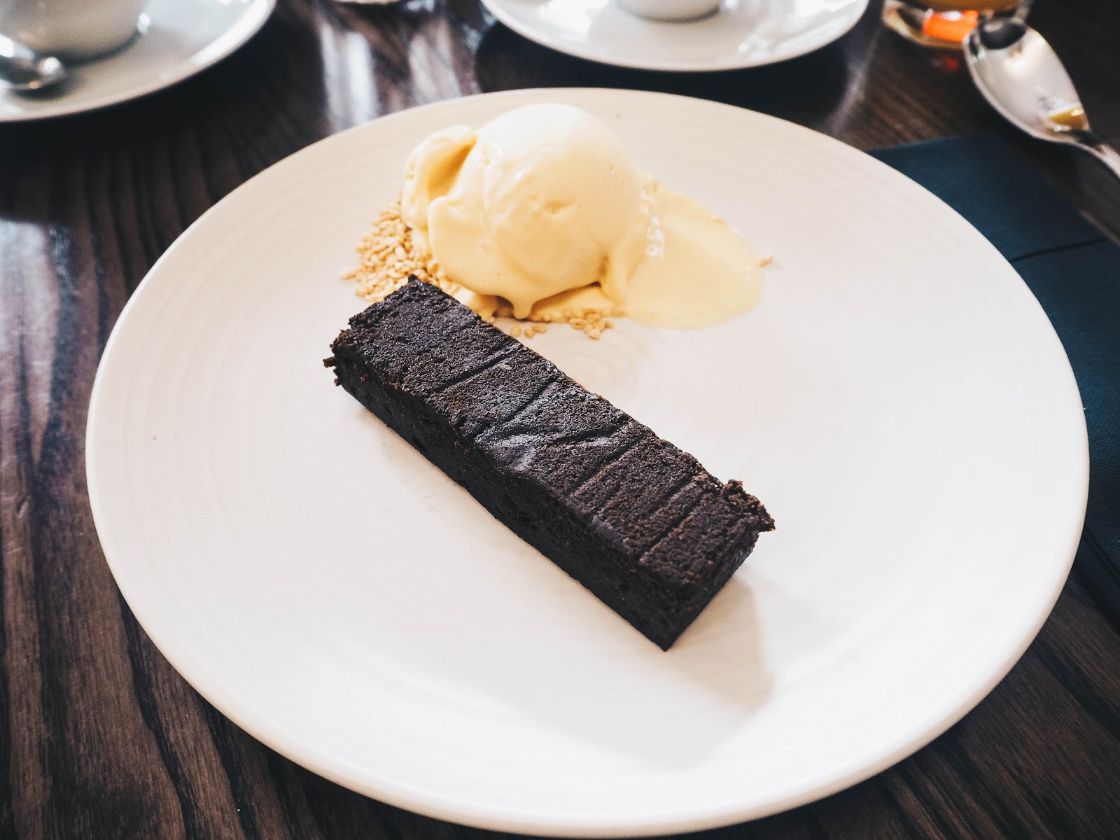 Dessert was a choice of dessert of the day or another Bloody Mary cocktail. We both decided to go for the Chocolate Brownie and Passion Fruit Ice-cream, which was absolutely amazing. Andrew asked for his without ice-cream, but I obviously wanted the full calorie intake and asked for ice-cream. SO good.