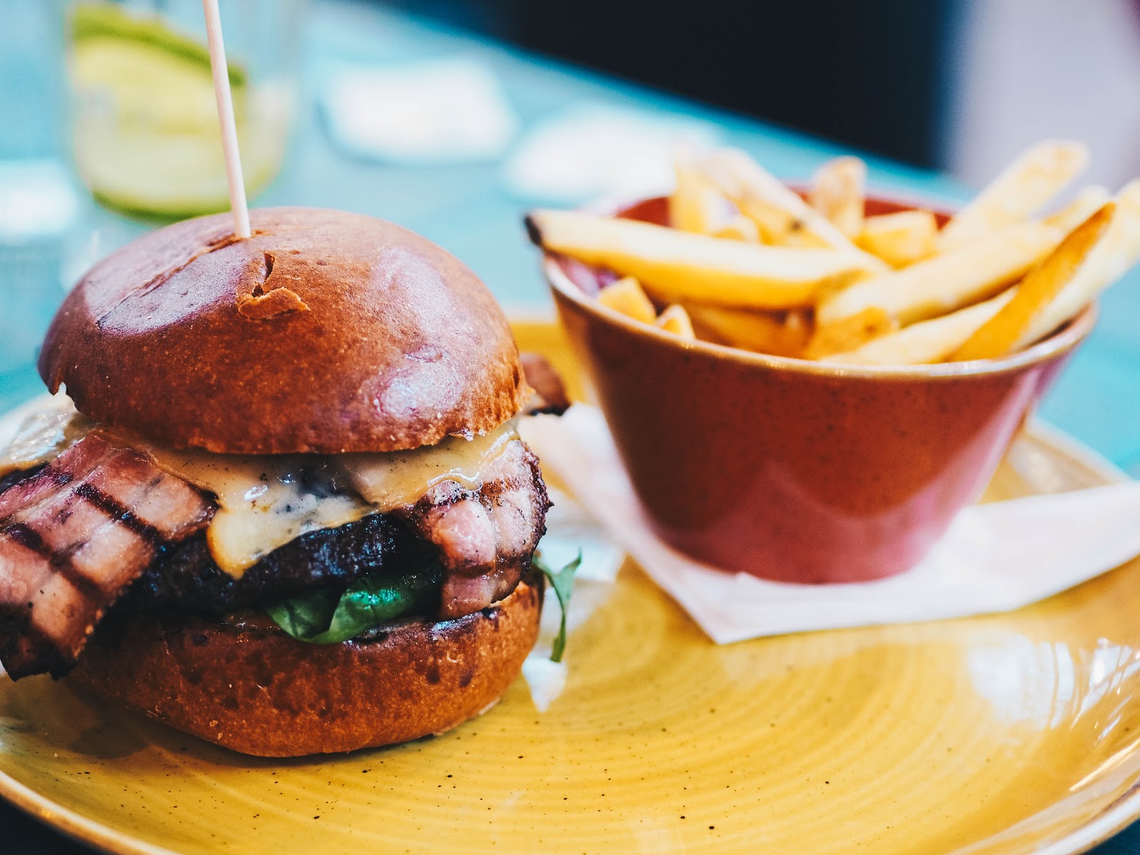 Our starters soon arrived and we couldn't wait to dig in to more food. My mum ordered the Smoky Joe burger and chips. A 6oz beef burger in a brioche bun; with streaky bacon, smoked cheddar, tomato, lettuce and a special burger sauce. Utterly divine if you're a burger lover!