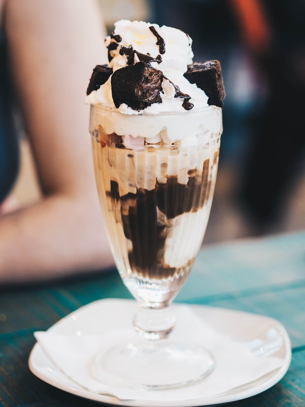 She went for the Rocky Road Sundae; an incredibly naughty tall glass of vanilla and salted caramel ice-cream, chocolate brownie chunks, whipped cream, chocolate sauce and marshmallows.