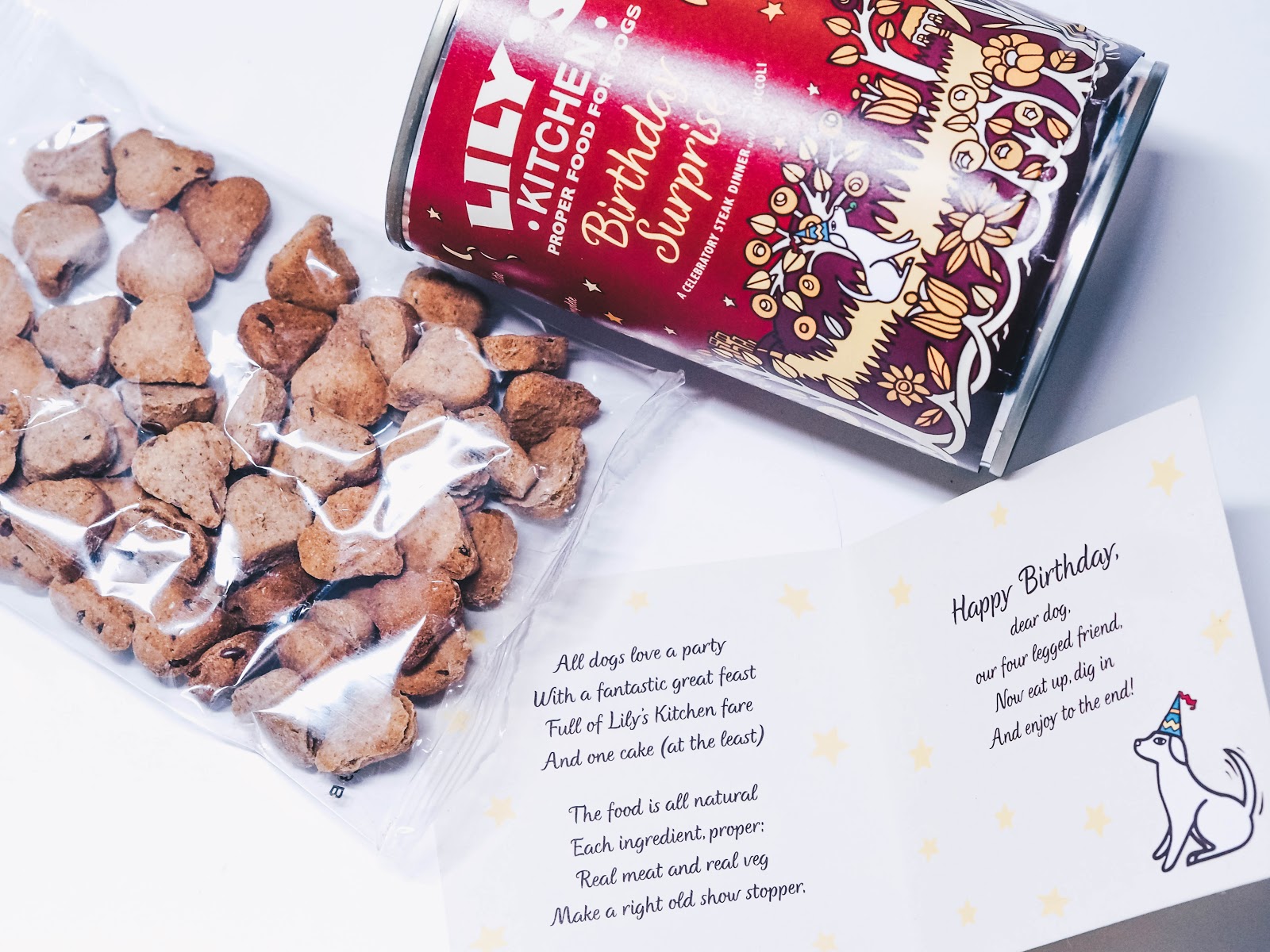 Lily's Kitchen have introduced a brand new product called the 'Lily's Kitchen Birthday Surprise' gift box. Inside is their 'party meal'; made up of different fresh cuts of steak, potatoes, broccoli and herbs. There's also a bag of organic cheese and apple training treats; hidden away for when your pooch rips open their gift box.