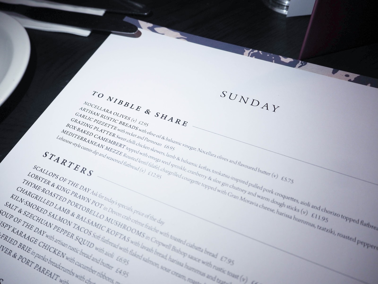 Next, it was time to galavant at the menu, which I hadn't had a sneak peak at - unlike Ricky! I knew I was probably always going to go for a Sunday roast as I am one of them people who is automatically in the mood for a Sunday roast every 7th day of the week!
