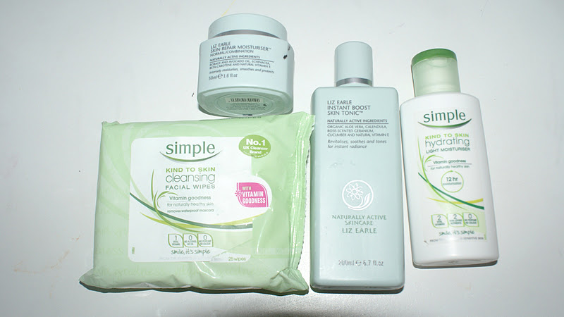 I cleanse my skin twice a day and these are the products I use. I usually always use Liz Earle's hot cloth cleanser, but I ran out the other day, so I'm having to use face wipes meanwhile! I use simple's moisturizer for the day time as it's lighter and the Liz Earle moisturiser for night time as it's super moisturising and really thick!
