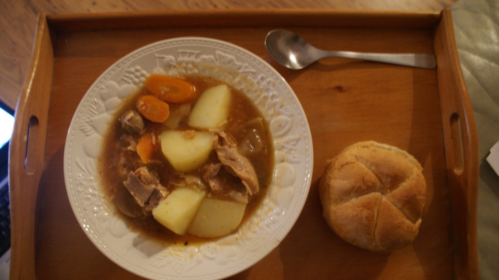 I think these pictures were taken about three weeks ago but I'm going to include them anyway! I live in my Grandad's jumper which he kindly let me take home clean from the washing line one day. I swear men's clothing can be so much comfier than women's! / These cereal bars are from Aldi and they taste so lovely. They're your typical cereal nutty bar but with a thick chocolate layer on the bottom, yum! / My Dad makes a stew from scratch every Winter. The tradition has run throughout his family since my nan cooked them every Sunday for us. Bread rolls are the best! / I think Todd took this... sleepy Ashleigh!