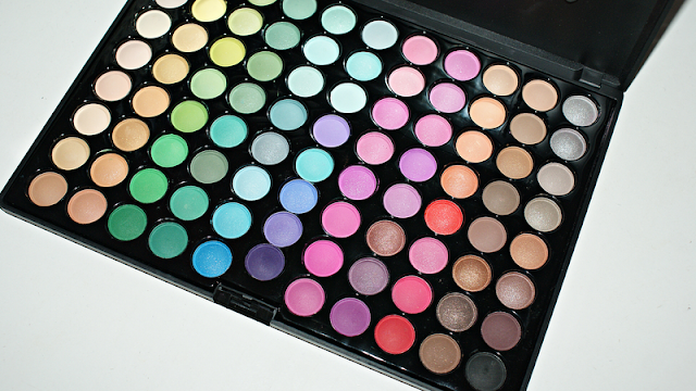 The 88 palette consists of 88 shadows ranging from pale pastels to brighter colours to the darker smoky browns, greys blacks. I was pleasently surprised how pigmented the shadows are. Even the lighter shadows in the top left area are really pigmented. I wouldn't say they're 'buttery' which is probably my favourite consistency when it comes to eyeshadows (oh naked palette, all eyes are on you), but for a price under a tenner (£10), it's got the wow-factor! As you can see, I only swatched a few of the brighter shadows and the darker green and black which I am now really excited to use properly!