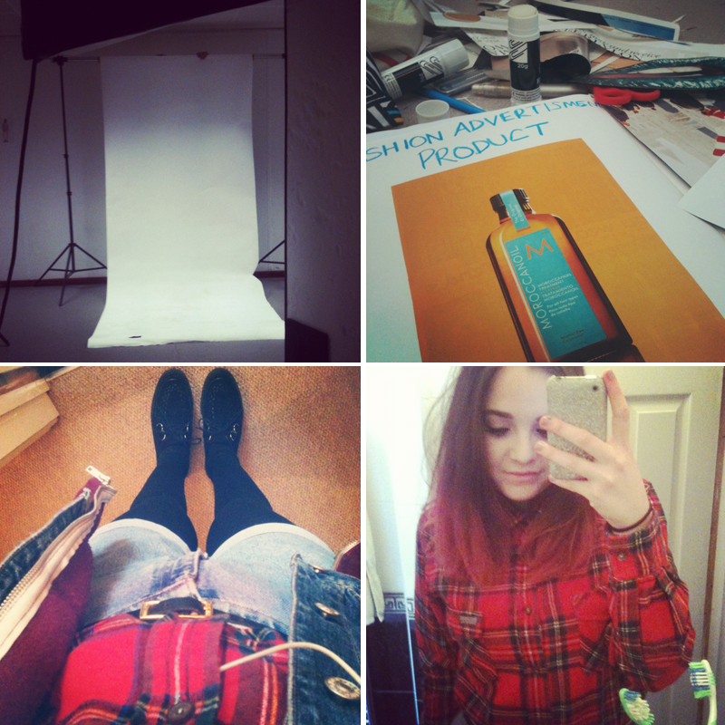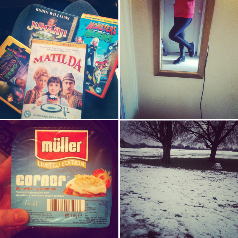 epic film fest · creepers · nicest yoghurt ever · more snow! · setting up for a test shoot · college work · thursday's outfit · pink dip dye! (review will be up in the week!)