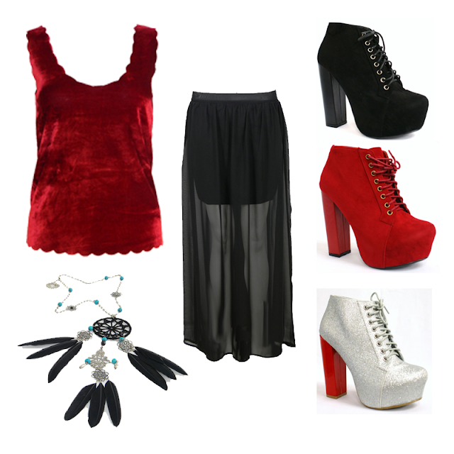 The clothes and dreamcatcher necklace are kindly being provided by Pop Couture. The shoes are from ebay and obviously ~inspired JC Litas. The shoot has to advertise something so I'm making the shoes the main focus. You may remember me tweeting about what pair to get a few days ago. When I put together this collage, I was stuck between these three pairs but have decided I'm now going for the red. The silver are gorgeous but a bit random and the black won't stand out against the skirt.