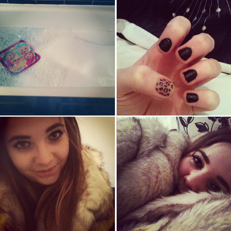 bubble bath with a teletubbie flannel (never too old) · matte leopard nails · new fur coat ~poses · soppy texts · morning alarms · functional skills lesson: writing a love letter formally (impossible but funny!) · college think ASHLLYD is offensive and tasteless · GBK visit yesterday with Todd · starbucks mm · found the shoes i've wanted for ages in the topshop sale! · cute jumper i also found in the sale · snow starting last night (04/02) · more snow · even more snow!