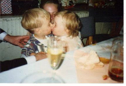 This photograph* of me and a boy was uploaded onto Facebook yesterday... hahaha! I was 18 months old! The boy is called Luke and a family friend. My Aunt is his Mum's friend and the only reason me and Luke talk is down to the teasing we get about our "first kiss" and here it is.. snapped! I think it's cute, however neither of us remember it!