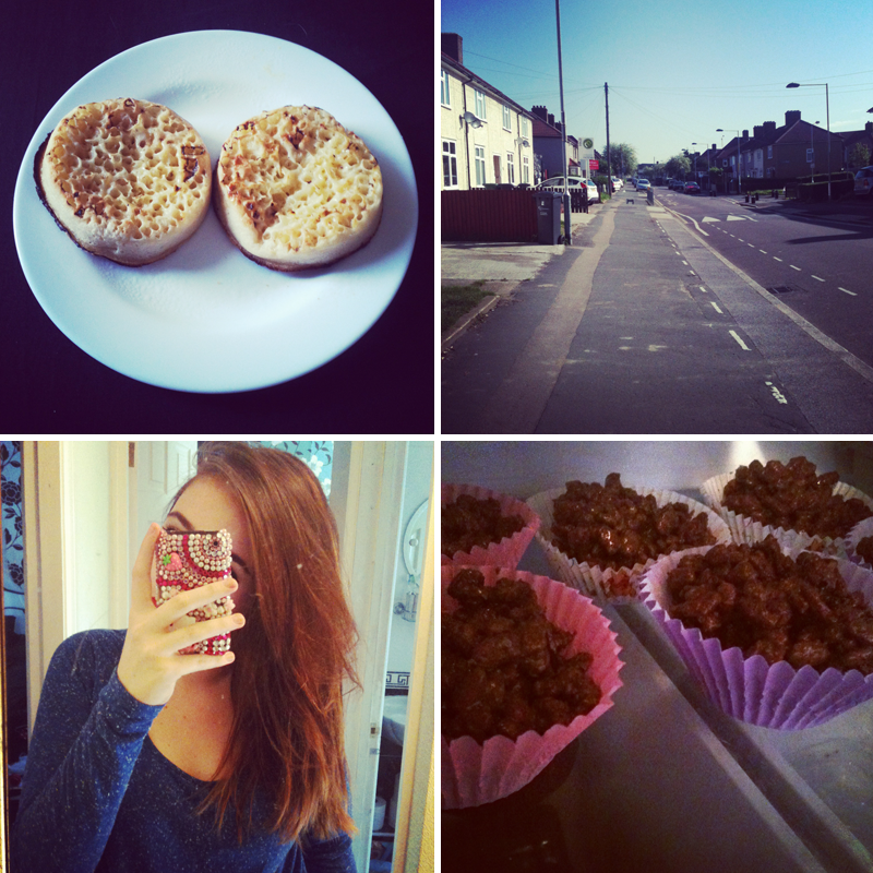 Morning crumpets · Sunday morning walk to work · Ombré growing out! · Made coco pops cakes with my Sister · Waiting for my driving instructor to turn up · Dressing like a boi · HP enthusiast · Deathly Hallows (P1) · Weird Jezza Kyle · Air max 90s ·Wednesday's outfit! (outfit post here) · Giveaway winner! · Visited my grandparents · Nan made me lunch :) ·Thursday's outfit! · Saw 'Dark Shadows' :) · Saturday's face · Bought h&m riding pants (finally!) · h&m playsuit · Keep or return this crop top? (from Topperz!) · Saturday's purchases · Dyed my hair red!