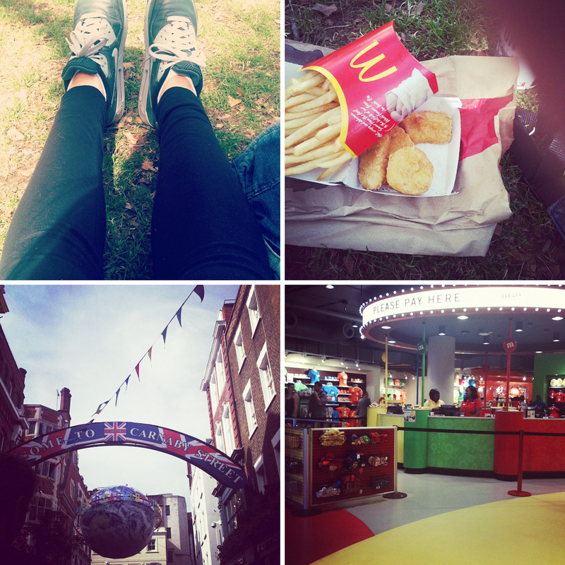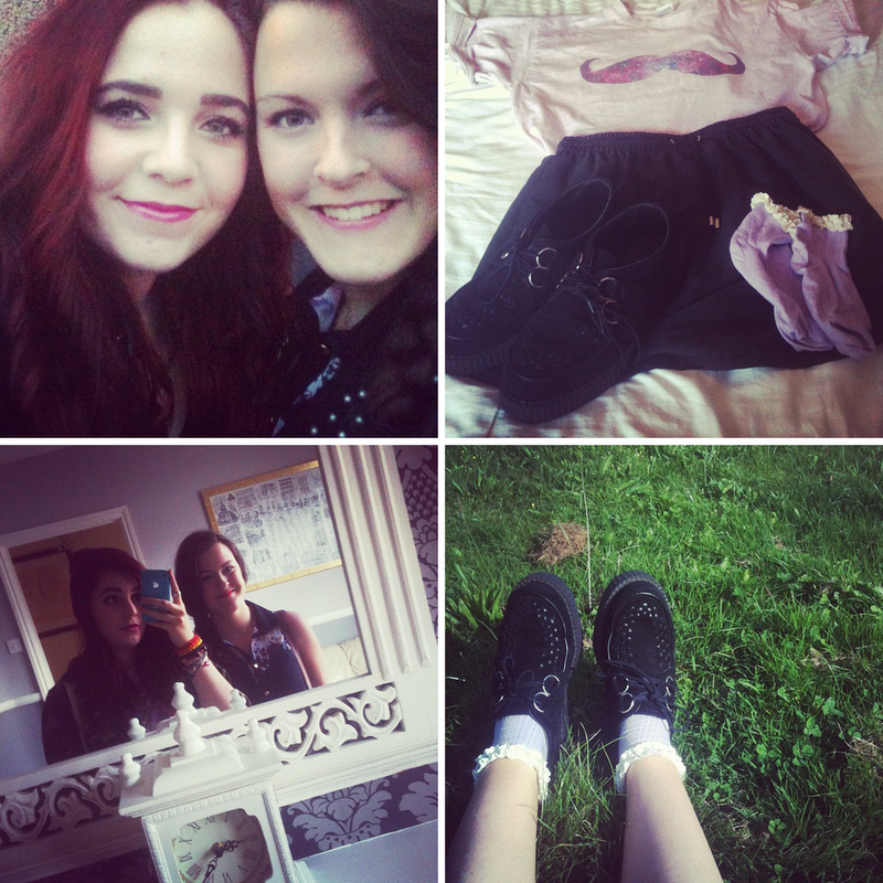Me and Louise on our way to a family meal in celebration of excellent GCSE results! · Outfit post · Off to the cinema · Chilling over the park · Bought a book at the airport and love it so far! · Drinks in Italy · Me and Louise family meal in Italy (no idea why my hair is purple!) · Waiting at Gatwick for a missing suitcase (it was later found abandoned on the runway!) · First day of Uni outfit · Second day of Uni outfit · Where I blog from · Feeling sorry for myself · Uni day 3 outfit · Thursday's face · Uni trip photography exhibition (Roger Mayne's work) · Elsbeth Juda's work · Sneakuurz · Chilling over Leicester Square · Popped into Carnaby Street · M&M world · New trainers (now skint) · Last BBQ of the year! · Maisy · & again!Just a little update as to what i've been up the past fortnight! Feel like I've mentioned this a million times, but my induction week at Uni was this week and so far I am really enjoying it. It's my first real day tomorrow so I'm super excited! Already been given three projects which seems like a lot of work but I can't wait to get stuck in!