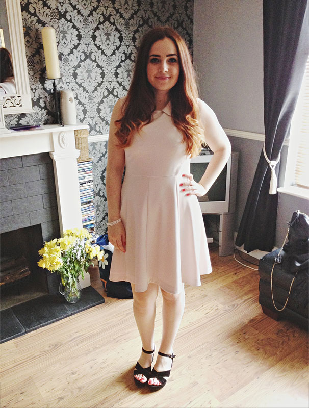 I was sent this gorgeous dress from French-Connection months ago and in all honesty, it's the most expensive and beautiful thing in my whole wardrobe. It's one of my favourite colours; a dusty pink in a really thick material. The detailing is minimal but comes with a really sweet peterpan collar meaning I didn't have to worry about jewellery other than a few dusty pink beaded bracelets. I paired it with my only pair of "going out shoes"; my trusty and very comfortable Primark flatform wedges. The best pair of shoes I have ever bought!