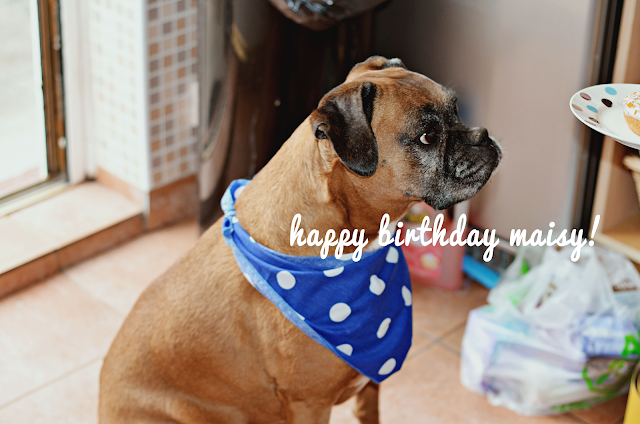 18th August celebrates our pooch's birthday. Today, Maisy is 9 years old or 63 in doggy years, crikey! Maisy is the heart and soul of our family. We got her when she was just three months old so has been a part of our family since she was just a bubba. Although she's growing a little white beard, she's still really fast, always hyper and always doing silly things. My mum gave her porridge (her favourite) this morning and she tried to eat it before the milk was added so ended up with white powder all over her face!
