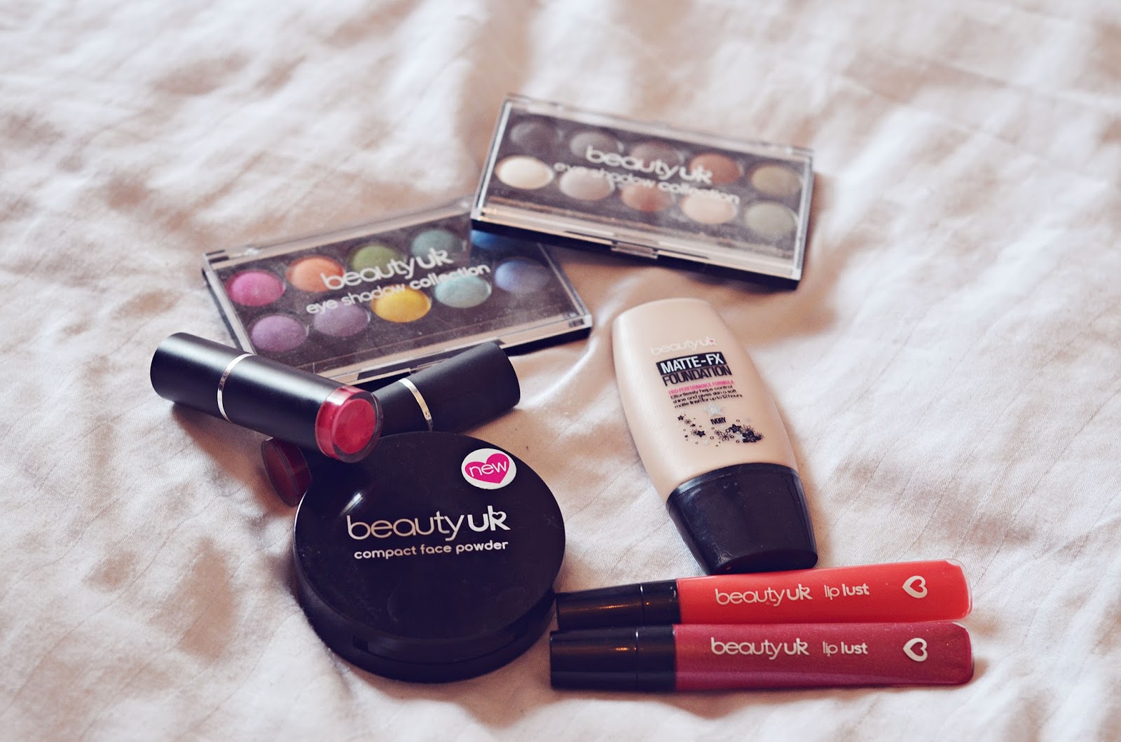 Beauty UK eyeshadow palettes, lipsticks, compact powder, foundation and lip lusts*