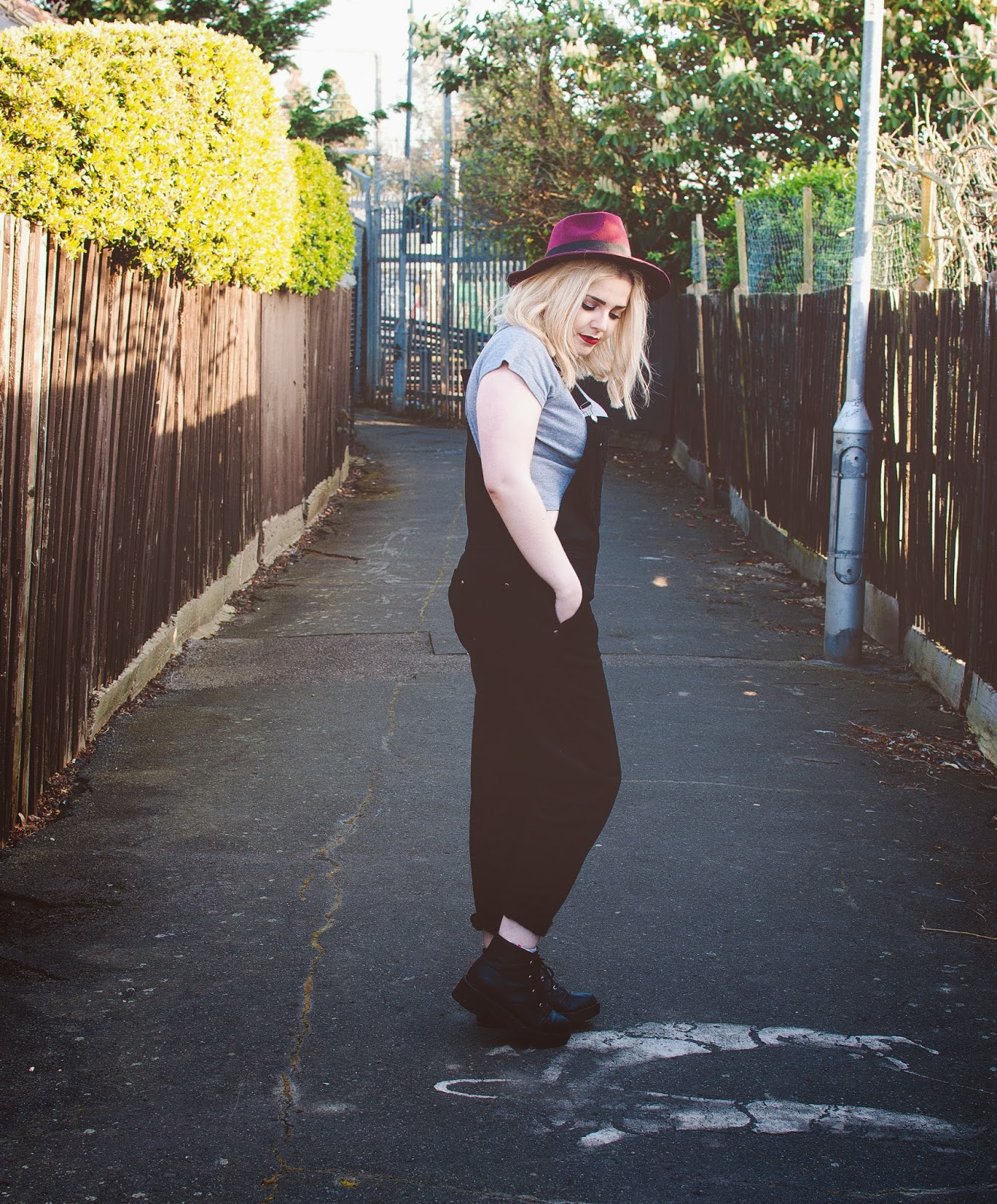Top: Primark | Dungarees: ASOS (here) Boots: ASOS | Hat: Depop | Sunglasses: Chicnova*