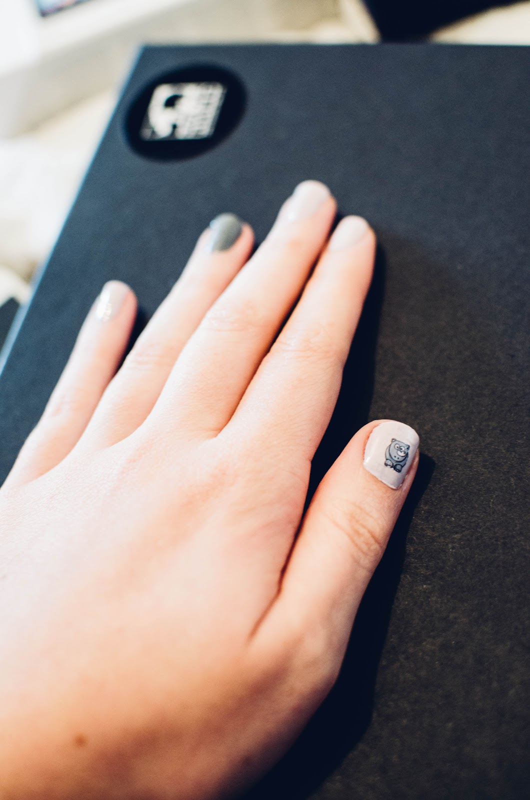 I then decided to use some super fun rhino nail stickers from Yrnails* which are really easy to use. You just cut down the stickers to size and then use warm water on the back of the paper to transfer it to your nail. They're basically tattoos for your nails!