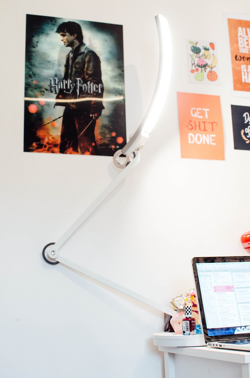 Basically, it's superb. I don't quite know how I managed to sit down and blog or take product photos without it for almost FIVE whole years?! Because the lamp can be moved and stand tall, every day I use it to blast the white light around my room/office and it completely changes the space I am working on. Instead of feeling and looking unmotivated, bleak and gloomy, my desk space looks ready to work at and fresh. The white light has been great to put above the white background on my desk for shooting products too so little photo editing is required.