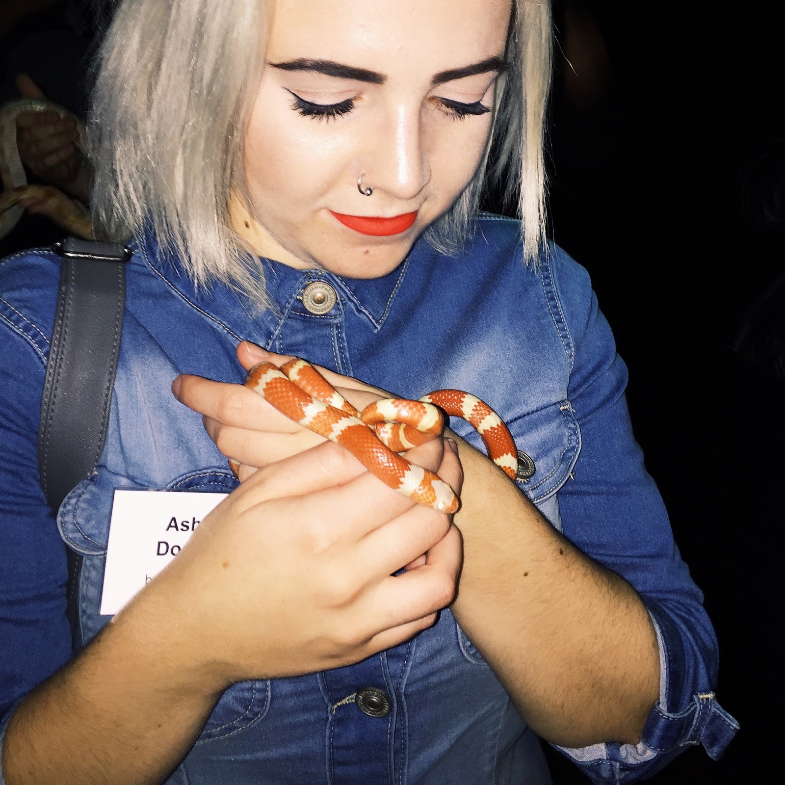 Once we entered, there was people from Reptile Events with a royal python and corn snakes. I'm not someone who has much experience with any kind of reptile, but I decided to hold one. I absolutely loved the corn snakes. It's so weird how your brain imagines snakes to be slimy and not very nice to touch; but they are actually the opposite.